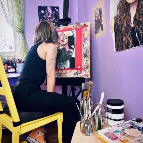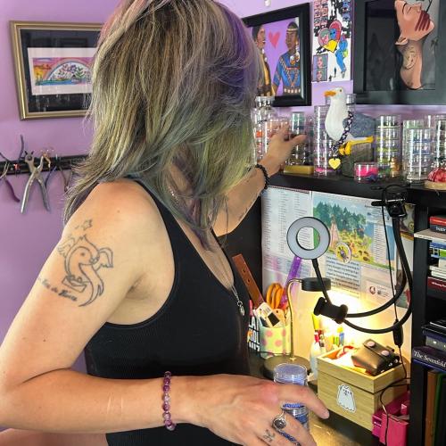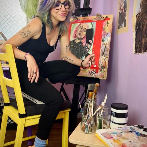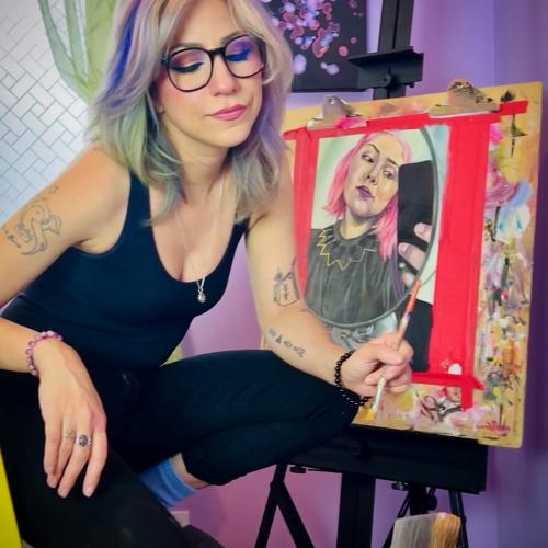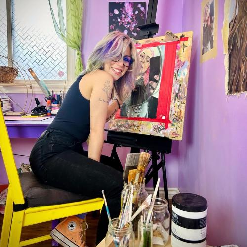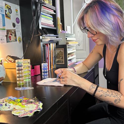 Amanda Amour Lynx is a Two Spirit, neurodivergent urban L’nu-Scottish interdisciplinary artist and facilitator currently living in Guelph, Ontario and member of Wagmatcook First Nation. Their art combines traditional l’nu’k approaches, contemporary painting with new media and digital arts guided by Mi’kmaq cosmology, star stories, ecological knowledges, gender identity and language resurgence.